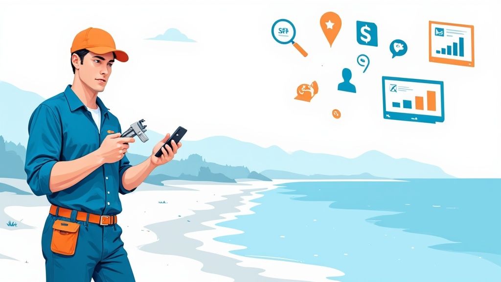 This strategy isn't about ranking nationally; it’s about owning your service area. For a plumber operating across Monterey County, this means showing up at the top of Google Maps and local search results, precisely when a customer needs you most. It involves a strategic combination of optimizing your Google Business Profile, building consistent local citations, and creating website content that speaks directly to your neighbors.